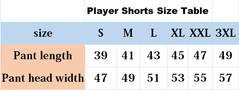 Please choose shorts size as the jersey size